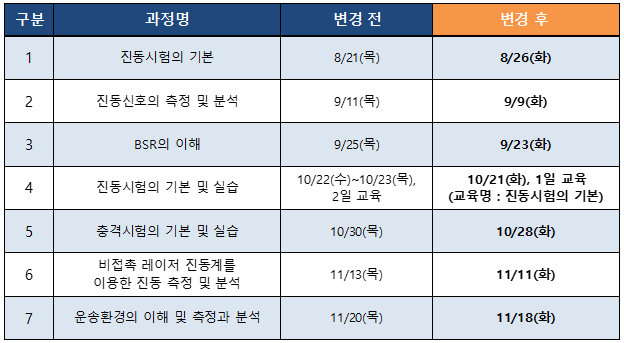 교육 참여에 착오 없으시기 바라며, 많은 관심과 참여 부탁드립니다. 변경된 일정에서도 유익한 시간을 보내실 수 있도록 정성껏 준비하겠습니다.